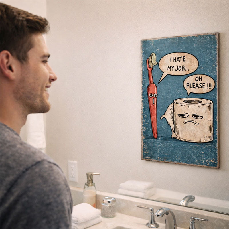 A painfully relatable joke that instantly adds humor to any bathroom.